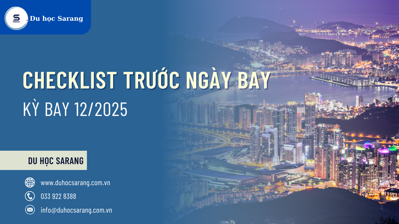 Trong những ngày cuối cùng trước khi chính thức đặt chân sang Hàn Quốc, tâm trạng của bất kỳ du học sinh nào cũng xen lẫn hồi hộp, phấn khởi và đôi chút lo lắng. Để giúp bạn tự tin hơn và không bỏ sót những điều quan trọng, Du Học Sarang gửi đến bạn Checklist Trước Ngày Bay đầy đủ và dễ áp dụng nhất. Bài viết này sẽ giúp bạn chuẩn bị tinh gọn – chính xác – và thật yên tâm cho kỳ bay 12/2025.