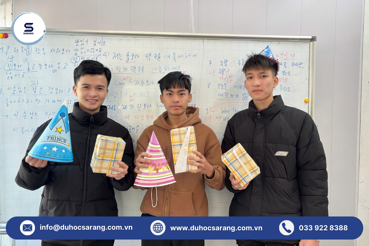 Trong hành trình chinh phục giấc mơ du học Hàn Quốc, mỗi sự cố gắng đều xứng đáng được ghi nhận. Hoạt động trao thưởng học sinh xuất sắc tại Du học Sarang không chỉ là phần thưởng cho thành tích học tập mà còn là nguồn động lực tinh thần to lớn, tiếp thêm niềm tin cho các bạn học viên và gia đình. Tháng 12 khép lại với nhiều nỗ lực đáng tự hào, Sarang đã tổ chức buổi vinh danh học sinh xuất sắc và gửi lời chúc mừng sinh nhật tới các học viên có sinh nhật trong tháng 1 đầy ý nghĩa.