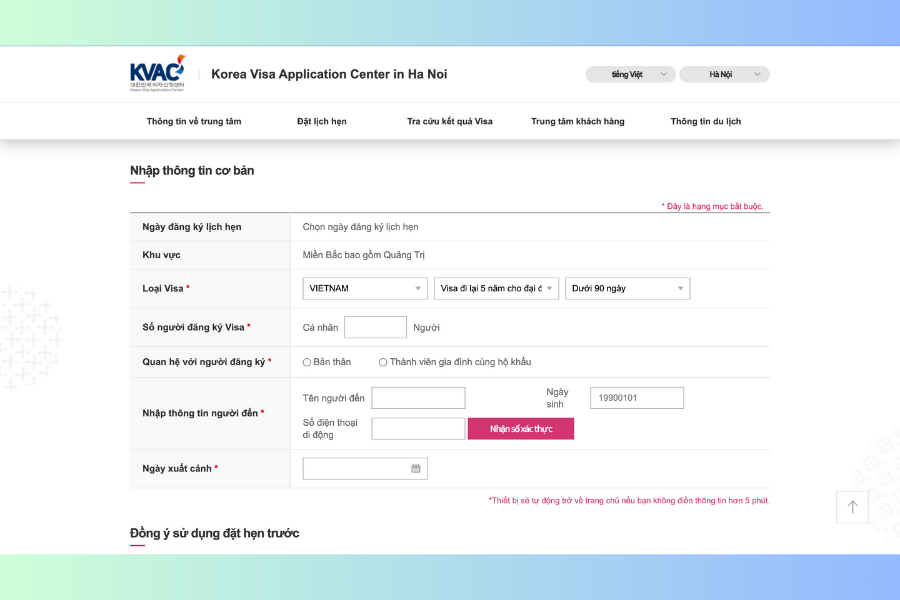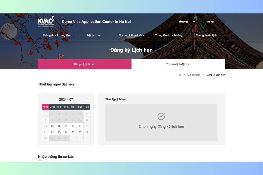 V. Hướng dẫn đặt lịch hẹn đăng ký xin visa tại KVAC Hà Nội