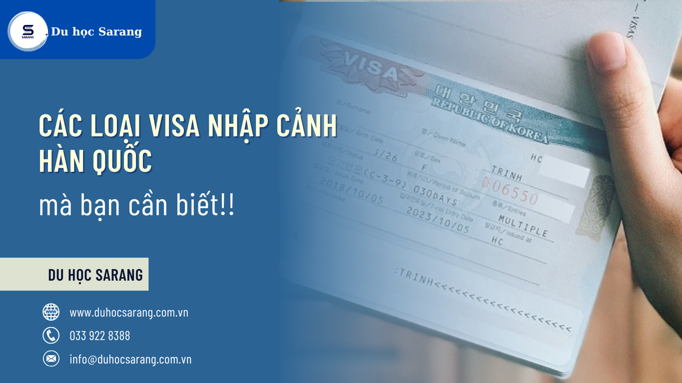 Khi có kế hoạch học tập, làm việc hay du lịch tại xứ sở kim chi, việc hiểu rõ Visa nhập cảnh Hàn Quốc là bước đầu tiên và quan trọng nhất. Mỗi mục đích nhập cảnh sẽ tương ứng với từng loại visa khác nhau, nếu chọn sai visa, hồ sơ của bạn có thể bị từ chối ngay từ đầu. Trong bài viết này, Du học Sarang sẽ giúp học sinh, phụ huynh và những ai quan tâm đến Hàn Quốc nắm rõ các loại visa phổ biến, đặc biệt là những visa liên quan trực tiếp đến du học.