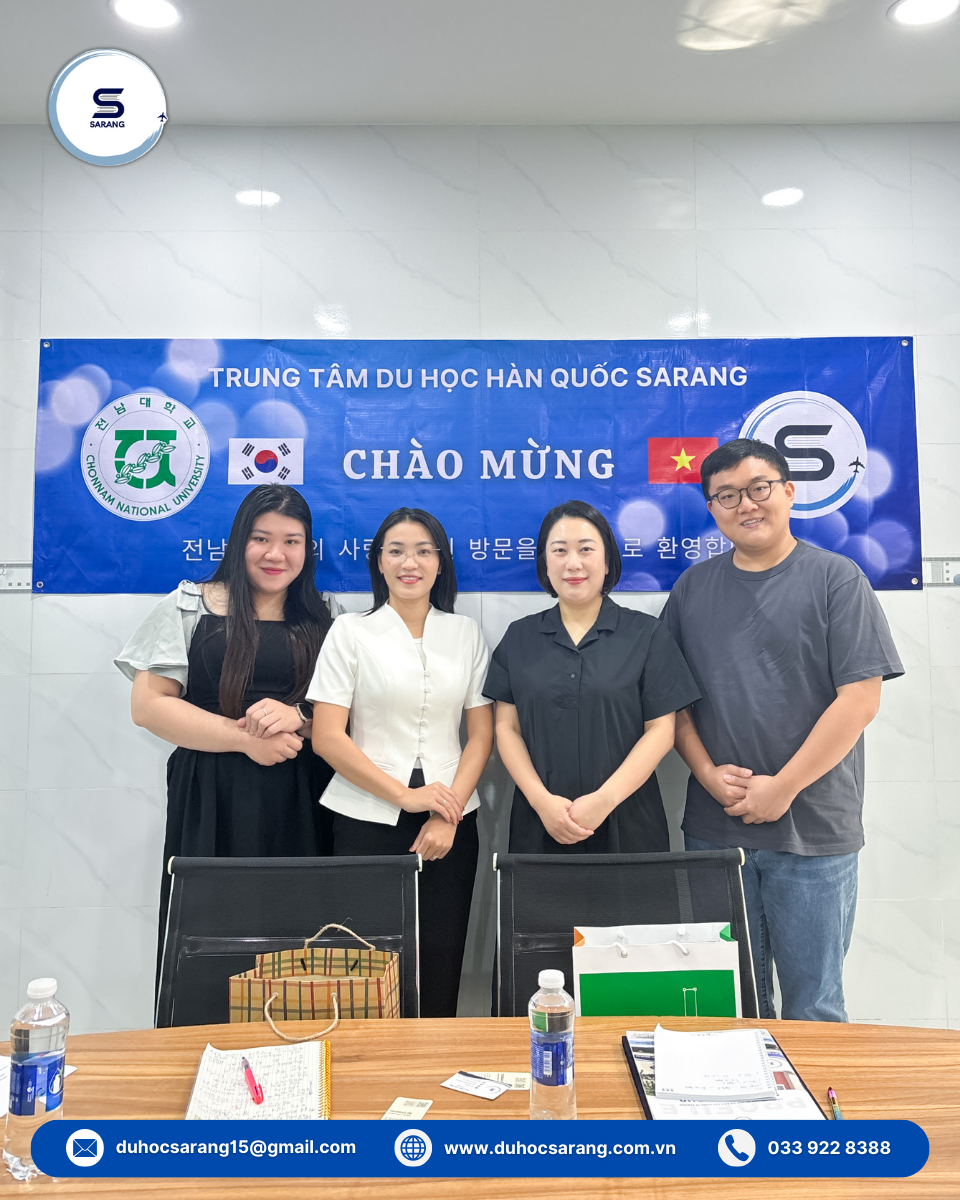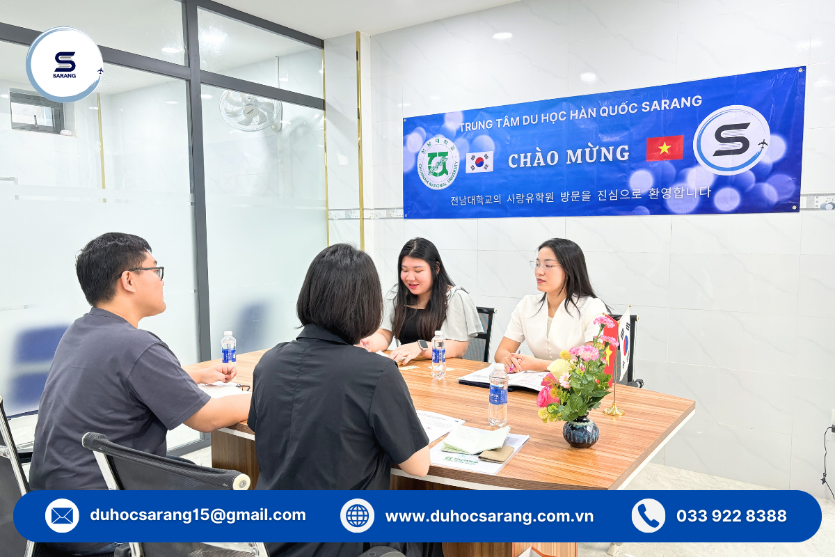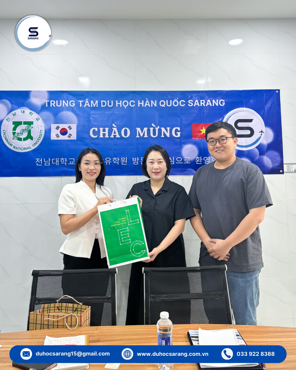 ĐẠI HỌC QUỐC GIA CHONNAM – một trong những trường đại học quốc gia hàng đầu Hàn Quốc – đã chính thức có buổi ghé thăm và giao lưu trực tiếp tại Du học Sarang. Sự kiện không chỉ đánh dấu mối quan hệ hợp tác bền chặt giữa Sarang và nhà trường mà còn mở ra nhiều cơ hội học tập, định hướng tương lai rõ ràng hơn cho các bạn học sinh đang ấp ủ giấc mơ du học Hàn Quốc. Với sự tham gia đông đảo của học viên, phụ huynh và đại diện nhà trường, buổi giao lưu đã mang đến rất nhiều thông tin giá trị, thiết thực và truyền cảm hứng mạnh mẽ.