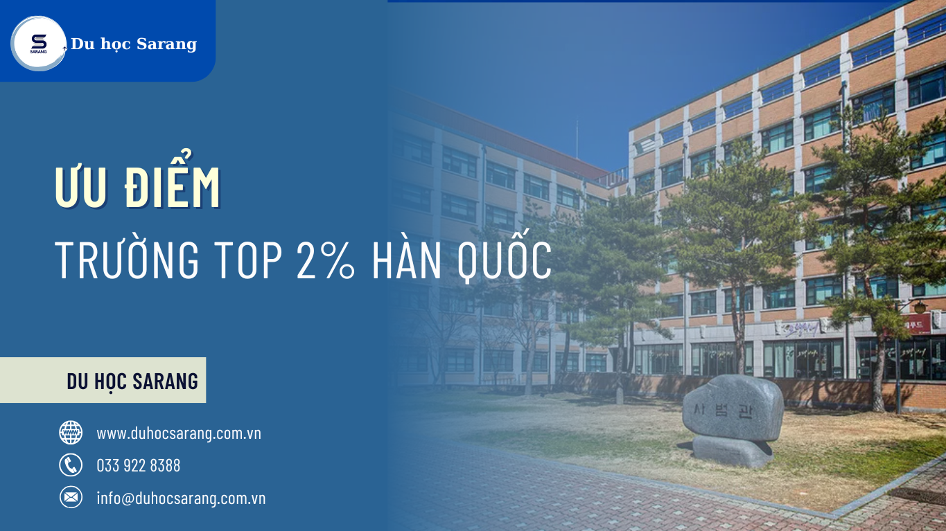 Trong những năm gần đây, Trường Top 2% Hàn Quốc luôn là lựa chọn ưu tiên của nhiều học sinh và phụ huynh Việt Nam khi tìm hiểu về du học Hàn. Không chỉ bởi danh tiếng được Cục Quản lý Xuất nhập cảnh Hàn Quốc công nhận, mà còn vì những lợi thế vượt trội về visa, học tập và cơ hội phát triển lâu dài. Vậy Trường Top 2% Hàn Quốc có gì đặc biệt? Vì sao Sarang luôn khuyến khích học viên lựa chọn nhóm trường này? Hãy cùng tìm hiểu chi tiết ngay dưới đây.